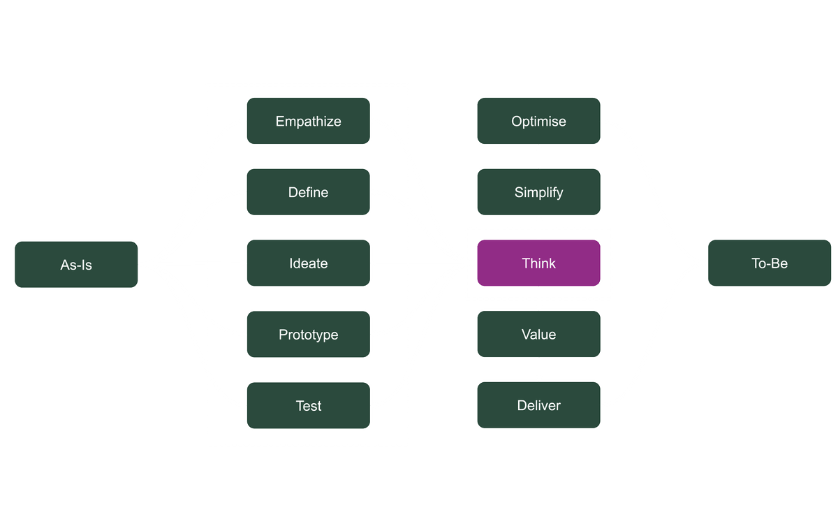 In complex industries, there is a compelling need to innovate. An early step we take to innovate is to Think. This is where we apply Thinking. It is Design Thinking in five stages, as defined by the Stanford d.school1.Empathize; Define; Ideate; Prototype; and Test.